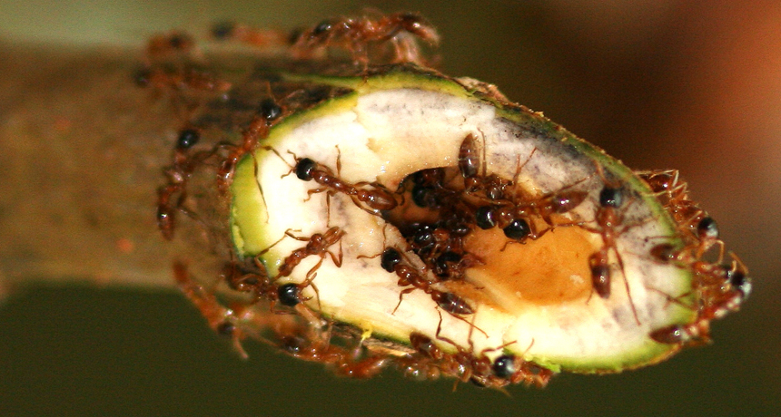 To test this idea, the researchers extracted chemicals from the host tree’s leaves. They soaked strips of paper in the chemicals. Then they pinned those strips, along with strips having no tangarana scent, to a tangarana trunk. The ants mainly cut up the paper that lacked the tangarana’s chemicals.