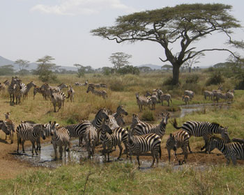 savanna A grassland sometimes also populated with trees. Most are fairly dry for part or much of the year.