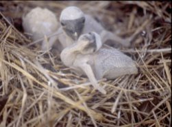But when little brown boobies meet big blue-footed boobies, sibling rivalry takes on a whole new meaning, the researchers found. Four of the transplanted brown booby chicks went berserk. Even when their new big siblings were nearly twice their size, the little chicks delivered as many as 700 pecks per hour. One baby brown booby even shoved the older chick out of the nest.