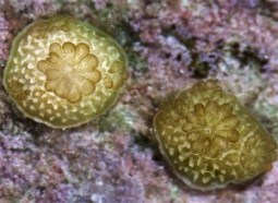 Here, two juvenile elkhorn corals only 26 days old have survived a sojourn in the open water but have successfully settled onto a surface to begin their life’s work of building a colony. Future endeavors may not be as successful.