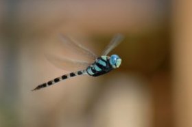 A dragonfly in flight.