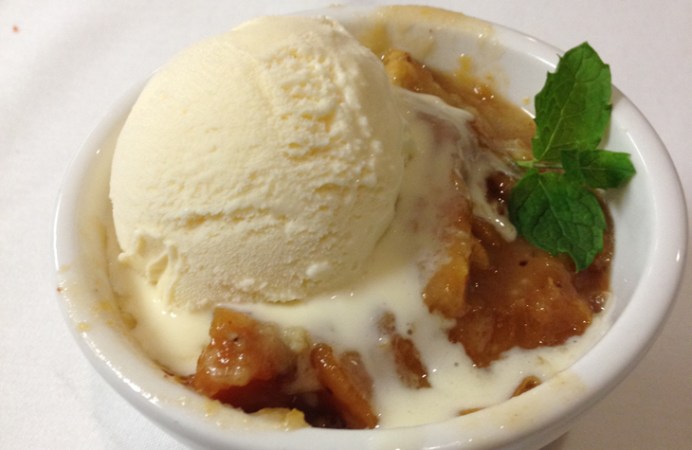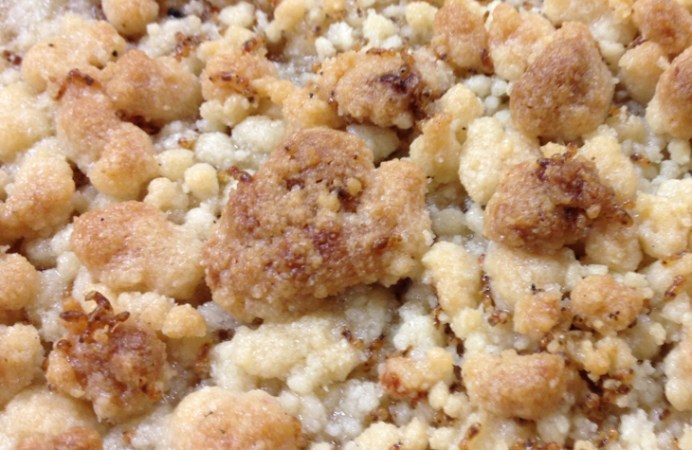 Our last course was cobbler made from fresh Alabama peaches and topped with a sugary streusel topping. But the streusel was laced with extra protein: Formosan termites. How much of an “ick factor” did Blancher encounter working with the bugs? “None,” he said smiling.
