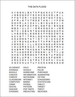 There is a huge amount of information available online. And its volume is growing at lightning speed. Each minute on average, more than 200 million emails move across the Internet (though most are spam). Twitter users post more than 300,000 new tweets. People across the globe share more than 38,000 Instagrams. YouTube users upload another 100 hours of video. Google processes more than 3.6 millionwebsearches. And 2.2 million things on Facebook get a “like” or a comment.