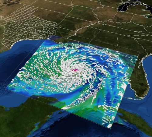 The Texas Advanced Computing Center in Austin generated this visualization of Hurricane Ike, which struck Texas in 2008. At the computing center, scientists feed tens of thousands of measurements of hurricanes into computer models. That work helps the experts improve their ability to predict the strength and behavior of future storms.