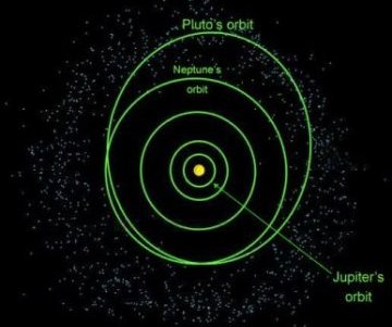 The Kuiper belt, which lies beyond Neptune’s orbit, includes Pluto and other icy objects.
