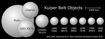 The relative sizes of various Kuiper belt objects.