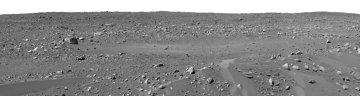 Panoramic view of a Mars landscape, as photographed by the rover Spirit.