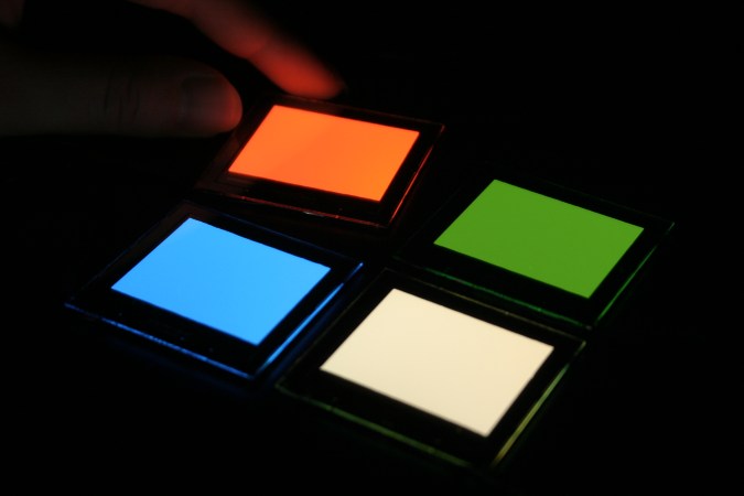 Making regular LEDs requires very hot temperatures. Making OLEDs doesn’t. “They can be processed at nearly room temperature,” says Kippelen. As a result, OLEDs can be put on almost anything, from a sheet of glass to very thin plastic. Inkjet printers could even do the job.