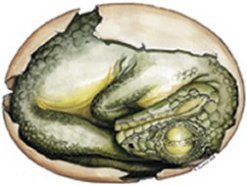 Skeletal features of a fossil of a dinosaur just before hatching reveal ungainly proportions and little evidence of teeth. |