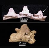 The tip of a spinosaur tooth (arrow in top image and shown in bottom image) stuck in a pterosaur neck bone suggests that spinosaurs sometimes preyed upon or scavenged the remains of flying reptiles.