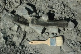 Participants in a Montana dinosaur dig unearthed a 20-centimeter-long fragment of a fossil rib from a new species of sauropod.