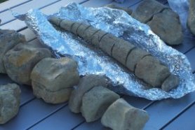 Tail vertebrae and fragments of a tail spike from a stegosaur found in Montana.