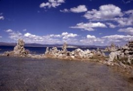 Mono Lake in California has salty water and is famous for its weird mineral formations. To see a VR panorama of the lake, go to geoimages.berkeley.edu/wwp605/html/JohnDotta.html or click on the link shown below. |