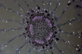 Example of a plant cell, stained and viewed under a microscope.