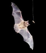 A big brown bat captures a mealworm dangling on a thread in this lab experiment.