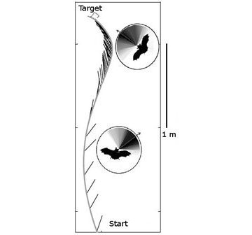 Moss and her students found a close connection between where a bat “looks” and how it flies. A bat directs its sound beam, like a flashlight, ahead of its flight. As the bat moves its head in the direction in which it calls, its body turns in the same direction