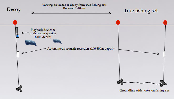 At the same time, underwater recorders “listened” for the classic clicking sounds made by sperm whales. To show the decoy worked, there had to be whale activity in the area before the trial started, and then clicking sounds at the decoy — not the boat — as the catch was being hauled up.