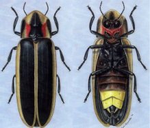 Light-producing chemical reactions in a firefly’s abdomen cause certain cells on its underside to glow (right). The species shown in this illustration is Say’s firefly, one of about 175 known species of fireflies in the United States.