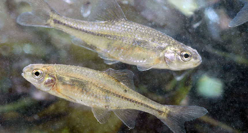 Close-up of two Oregon chub. This minnow species has recovered from the brink of extinction. On Feb. 4, the U.S. government announced it planned to remove the fish from its Endangered Species List.