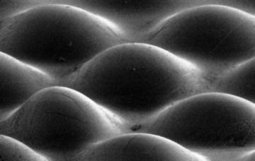 A new material contains craters (above) that can flip into bumps (below), mimicking how the flytrap works. |
