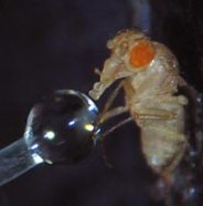 A fruit fly uses its proboscis to taste and take in food.