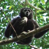 White-handed gibbons are known for their loud songs, which echo through the rainforest. Pairs of adult males and females mate for life, and these pairs perform duets, often changing the tunes over time.
