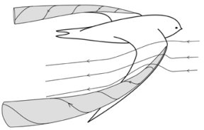 The sharp leading edges of a swift’s wings may create swirls of air (gray cones) that produce extra lift.