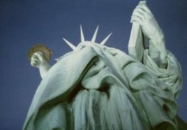 The Statue of Liberty has a greenish color because the copper metal from which it was made combined with oxygen in the air. |