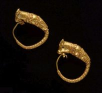 Jewelry made in the shape of animals, like these gold earrings, was popular more than 2,300 years ago in ancient Greece. |