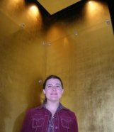 Sarah Webb stands in the gold room at the American Museum of Natural History. The walls and ceiling are coated with a layer of gold only 0.18 micron thick. |
