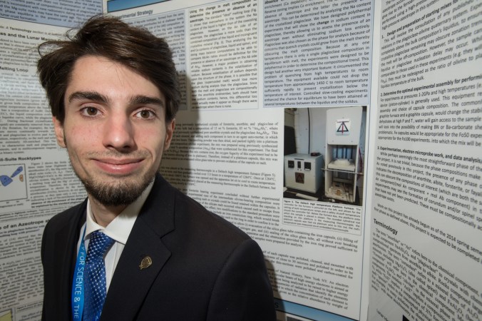 Aron Coraor, who attends Huntington (N.Y.) High School, reproduced lunar minerals in the lab to gain insight about where in the moon’s crust those minerals might have formed. Hint: It’s not green cheese