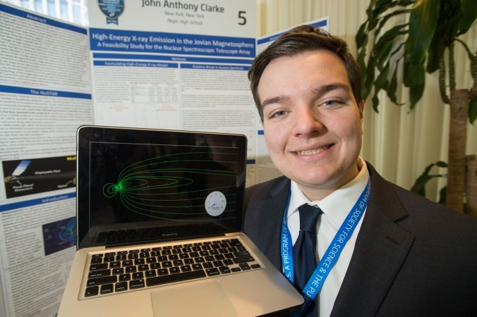 John Anthony Clarke, who attends Regis High School in Syosset, N.Y., used a computer simulation to model emissions from the auroras seen around the poles of Jupiter, our solar system’s largest planet.