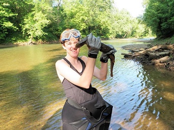 “When you touch one, it produces huge amounts of slime,” explains Emily McCallen. “It really does feel like snot.” McCallen is studying hellbenders as a graduate student in forestry and natural resources at Purdue University in West Lafayette, Ind.