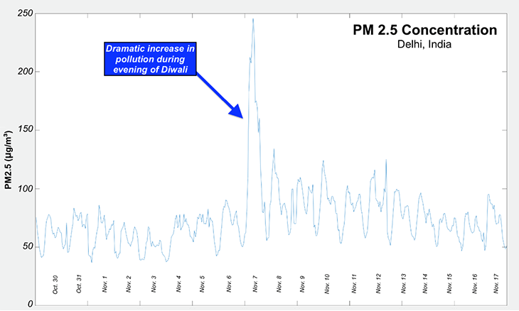 They looked over data from the week before Diwali through the days right after it. And they looked at precisely when and how PM levels changed during that period. They were hunting changes that coincided with the fireworks revelry.