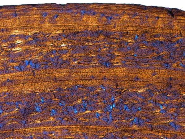 The lines reveal how a creature’s bones grew. Like a tree that adds a ring of growth every year, the bone gains a thick ring during growth spurts and times of good nutrition. When food is lacking, an annual ring will be thin, indicating the animal added only a small sheet of new bone that year. The thin rings are called “rest lines” and suggest a slowdown in growth during that time.