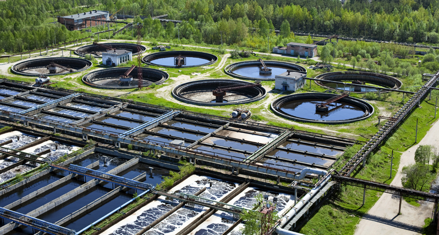 Wastewater treatment plants, like the one shown, use bacteria to treat sewage. But a germ-killing chemical in some household products can harm those helpful bacteria.