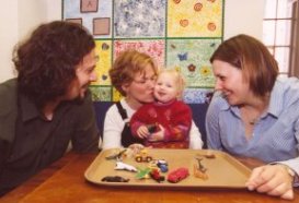 At Carnegie Mellon University’s Infant Cognition Lab, David Rakison (left) studies how babies process information and learn about the world around them. |