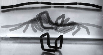 SHAPE SHIFTER This video, which plays at 100 times normal speed, shows what happens to the engineered strand after it is placed in water. It forms the letters “M-I-T.” Stratasys & The Self-Assembly Lab at MIT |