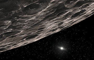 In this illustration by an artist, the distant sun looks like a star, as seen from near an icy object in the solar system’s Kuiper belt.