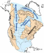 Western Interior Seaway This shallow marine sea, sometimes called the Cretaceous Seaway, split North America into two landmasses: Laramidia to the West and Appalachia to the East.