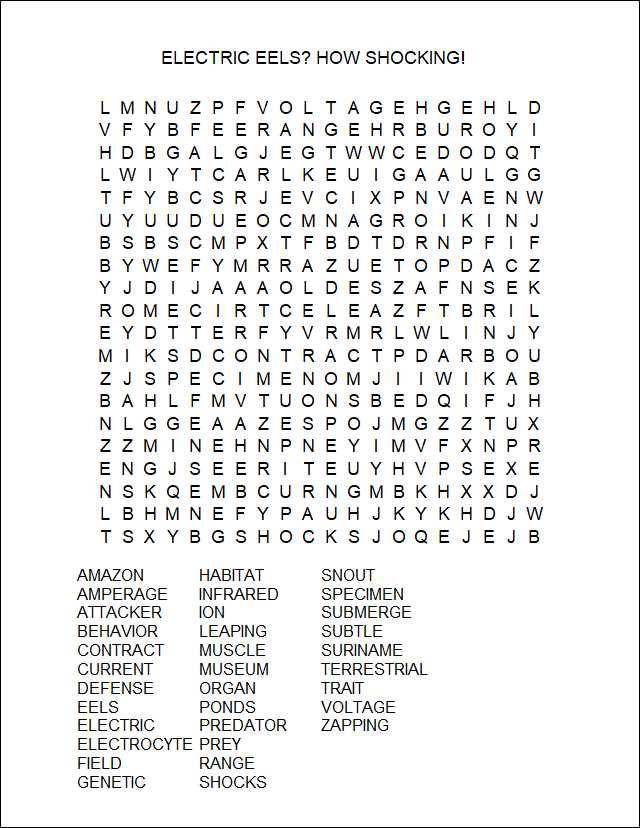eel: A fish with a snake-like body and no scales. Many migrate from freshwater to salt water when it’s time to spawn.