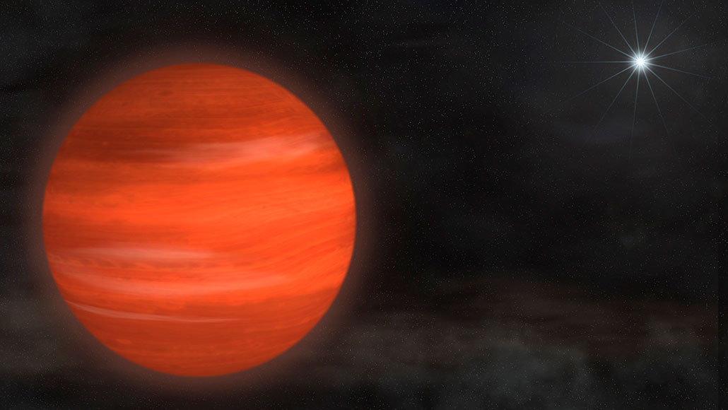 This is an artist’s image of the exoplanet Kappa Andromedae b, a planet 13 times the size of Jupiter.