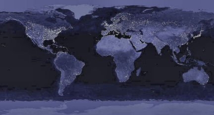 Made from many images put together, this composite shows Earth’s city lights from above. The biggest cities appear brightest. |