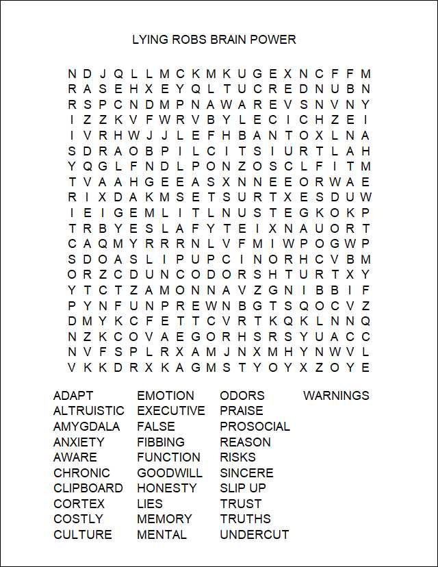 Scientists describe these as “executive function” tasks. Executive function comes into play when you use self-control to keep from blurting out the truth or some fact that would expose your lie. It helps you recall all the details of a lie to make sure that it sounds believable and you don’t slip up. Executive function lets you think a step or two ahead to make sure the lie you’re telling will likely hold up to questioning.