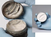 A Roman cosmetic cream in its original container (left) and a modern version of this concoction created by scientists (right).
