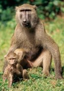 Female olive baboons, such as this mother, may prod males entering a troop to tone down their normally violent behavior.