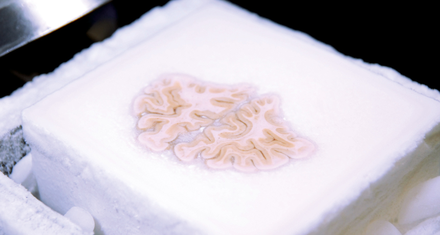 After being frozen solid, Henry Molaison’s brain (shown here) would be sliced into tissue-paper-thin wedges and then photographed.