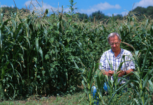 Computer modeling can help farmers forecast the effect of different variables on harvests of crops. These simulations can replace actual field tests. For example, mulch protects the taller corn plants, seen in the background of this image, from drought. Compare them to the stunted plants, in the foreground, grown without mulch.