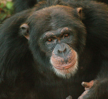 Scientists have discovered that chimpanzees, like this one, often act kindly toward each other, even if they get nothing back in return. |