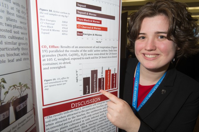 Biochar is the name growers give to charcoal when it is used in agriculture. It’s a natural substance and doesn’t have added chemicals, so it’s acceptable to organic gardeners, Anne explains. For her Intel ISEF project, she explored biochar’s potential to fight soil-borne diseases that afflict plants (and can sicken people).